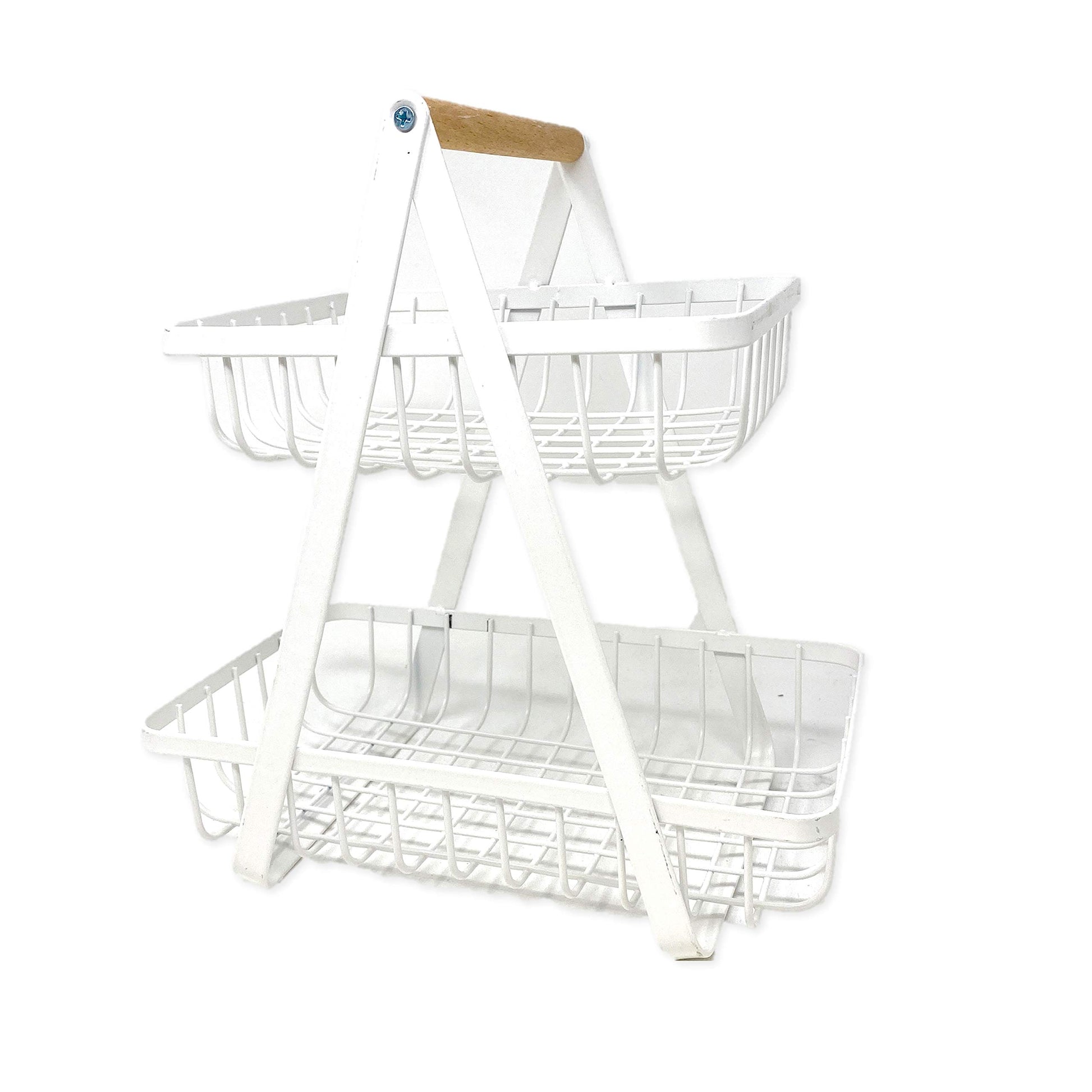 THE NIFTY NOOK Farmhouse 2-Tier Metal Fruit Storage Basket Organizer Display Stand For Home Decoration (White)
